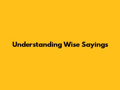 Understanding Wise Sayings